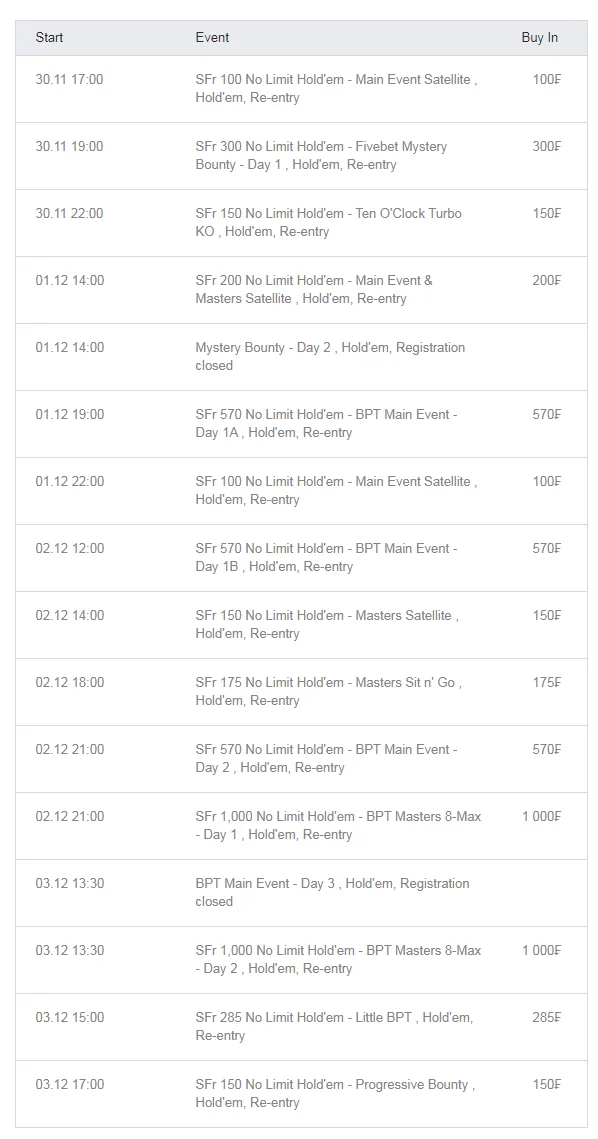The Barrière Poker Tour in Montreux is set to feature a diverse array of tournaments catering to various poker variants and playing styles. From the classic No-Limit Hold’em to other thrilling variations, participants will have the chance to test their skills and vie for substantial prize pools. The tournament lineup ensures there’s something for everyone, from seasoned pros to newcomers eager to experience the thrill of live poker. More live events!