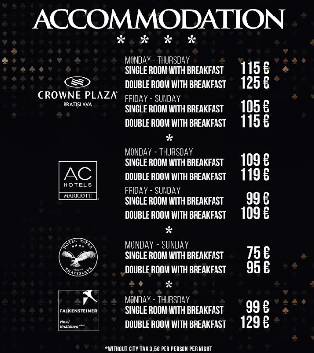 We’re thrilled to announce our partnership with premier hotels in Bratislava to provide players with special accommodation packages during all Banco Casino in Bratislava live poker events!