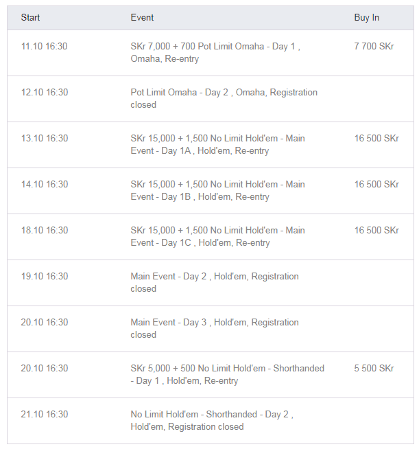 - Venue: Casino Cosmopol Stockholm