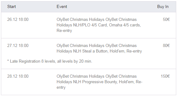 Don’t miss the opportunity to wrap up the year with poker joy and holiday cheer. Secure your spot, prepare for thrilling gameplay, and experience the magic of the season at the OlyBet Christmas Holidays Poker Extravaganza.