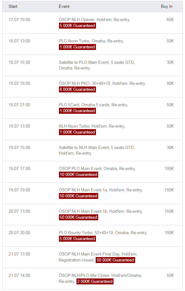 The ÖSOP is one of the highlights of the poker calendar, attracting players from Austria and beyond. With a guaranteed prize pool of €50,000, this tournament series offers a variety of events catering to different playing styles and skill levels. Whether you’re a seasoned professional or a newcomer to the game, there’s an opportunity for everyone to participate and win big.