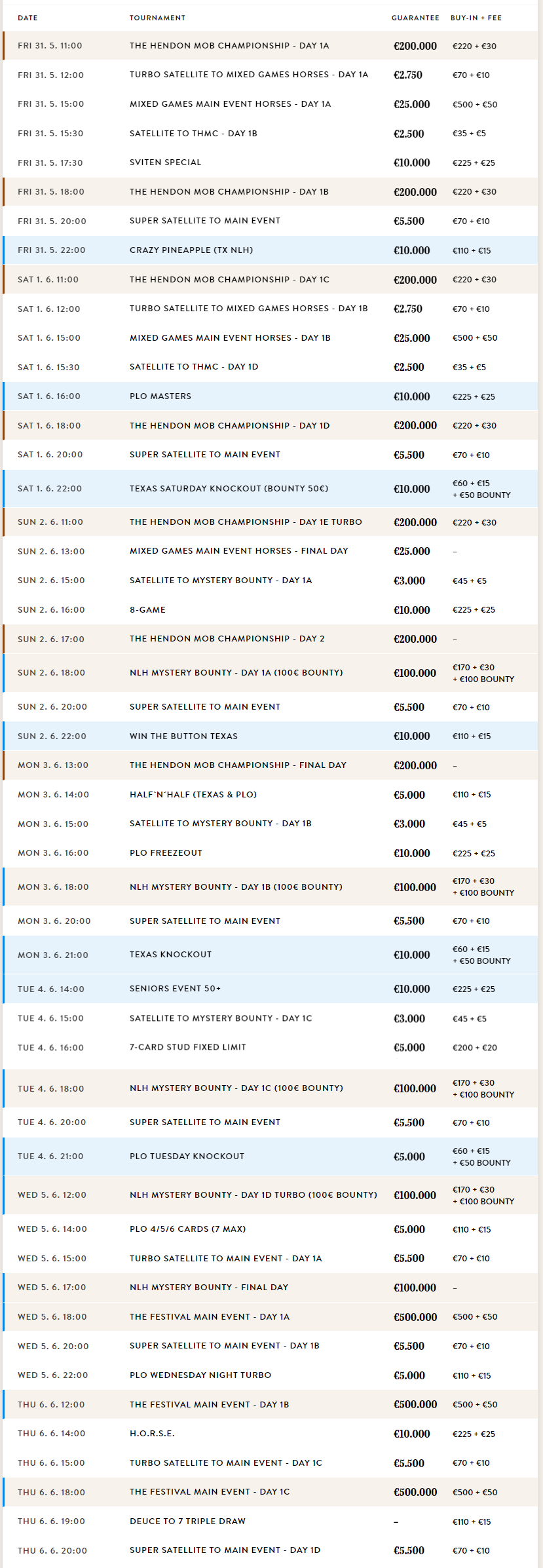 - Variety of Events: The Festival Rozvadov offers a wide range of poker tournaments and cash games, catering to different preferences and playing styles. Whether you prefer Texas Hold’em, Omaha, or other variants, you’ll find plenty of opportunities to showcase your skills and compete against players from around the globe.