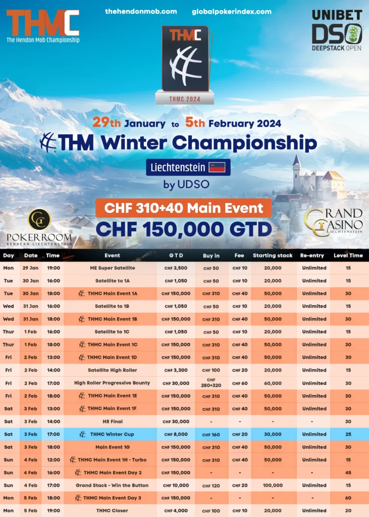 Save the dates for The Hendon Mob Winter Championship and join us in Gamprin-Bendern for a week of intense poker, camaraderie, and a celebration of the poker community.