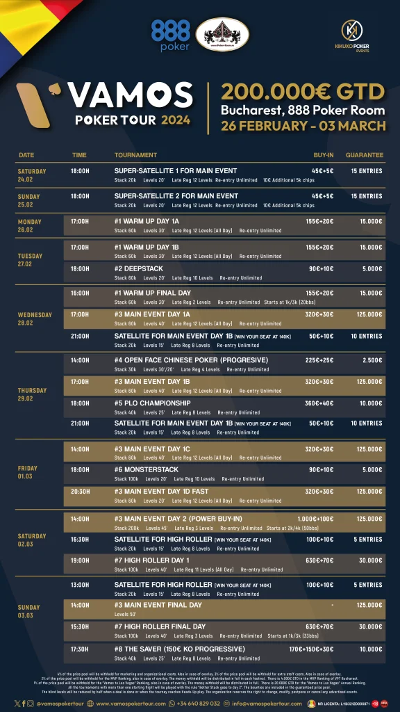 The vibrant city of Bucharest is set to host the eagerly anticipated VPT Bucharest 2024, a seven-day poker extravaganza that promises to be bigger and better than ever. Running from Monday, February 26, to Sunday, March 3, this year’s edition boasts a remarkable €200,000 in guaranteed prizes, a substantial increase from the previous year’s guaranteed total.